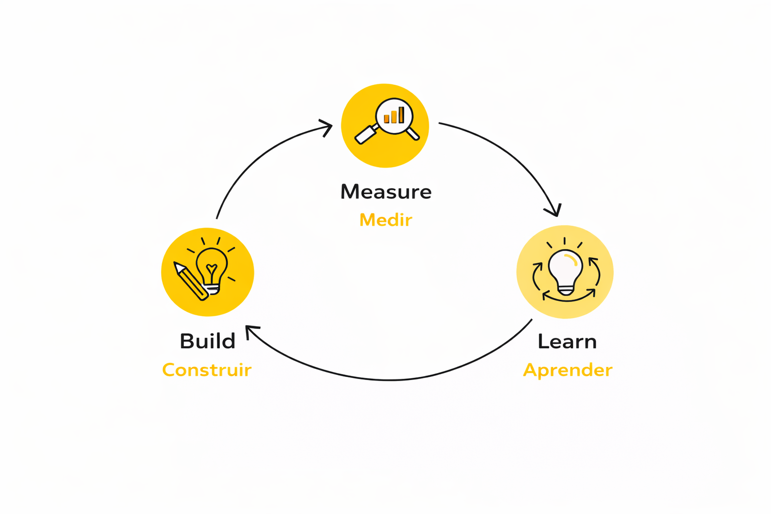 El núcleo de la metodología Lean Startup es el ciclo Build – Measure – Learn (Construir – Medir – Aprender).